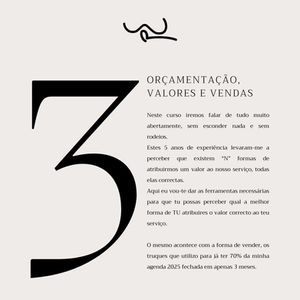 Neste curso de wedding planner irei partilhar convosco, para além da minha forma de trabalhar, métodos únicos que podem utilizar para ter os melhores fornecedores do mercado, como vender o vosso serviço e, mesmo no termino deste curso, iremos fazer um editorial, onde vocês ficarão com, para além de todas as bases para começarem o vosso negócio, fotografias e videos para o vosso portfólio.